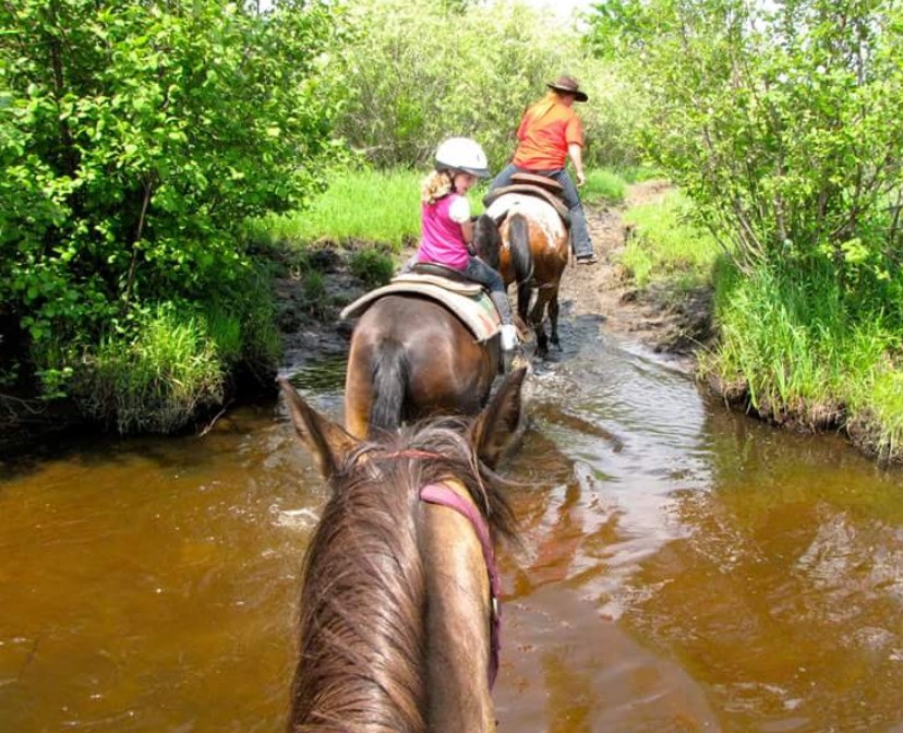 These longer rides take you deep into the woods where we’ll stop for a traditional cowboy cookout. We’ll fire up the pit for hot dogs, chips, treats, marshmallows, and cold pop before mounting back up to finish your ride